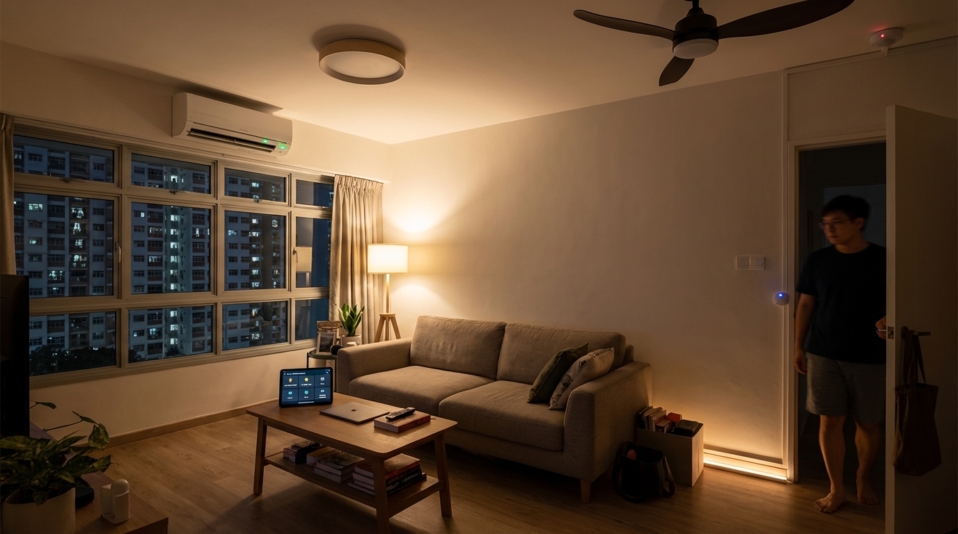 Imagine walking into your living room in your Sembawang HDB or Queenstown condo, and the lights transition to a warm glow, the air-con hums to life, and your favorite playlist begins to play—all without you touching a single switch or uttering a voice command. When you sit on the sofa to read, the lights stay on perfectly. When you leave for the kitchen, they dim behind you.